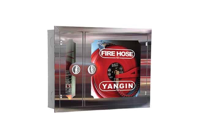 Kuru Sistem Yangın Dolapları: TS EN 9222 standardına uygun, 2” ve 2 1/2” dışı bez örgülü, içi kauçuk veya içi PVC hortumlar ile üretilir. Tek makaralı olarak 20 m, 25 m, 30 m; çift makaralı olarak 40 m, 50 m ve 60 m hortum uzunluklarında, düz lanslı ve kumandalı lanslı imalatı yapılmaktadır.
